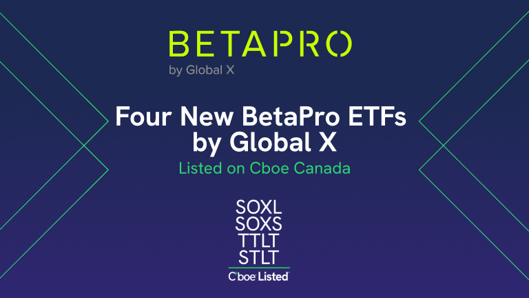 Toronto | August 12, 2025 – Cboe Canada Inc. (“Cboe Canada”) is pleased to announce the launch of four new BetaPro ETFs from Global X Investments Canada Inc. (“Global X”). Now trading on Cboe Canada under the symbols SOXL, SOXS, TTLT and STLT, the new funds are designed to provide magnified (leveraged) or inverse exposure to the daily performance of a specific index, commodity, or sector.