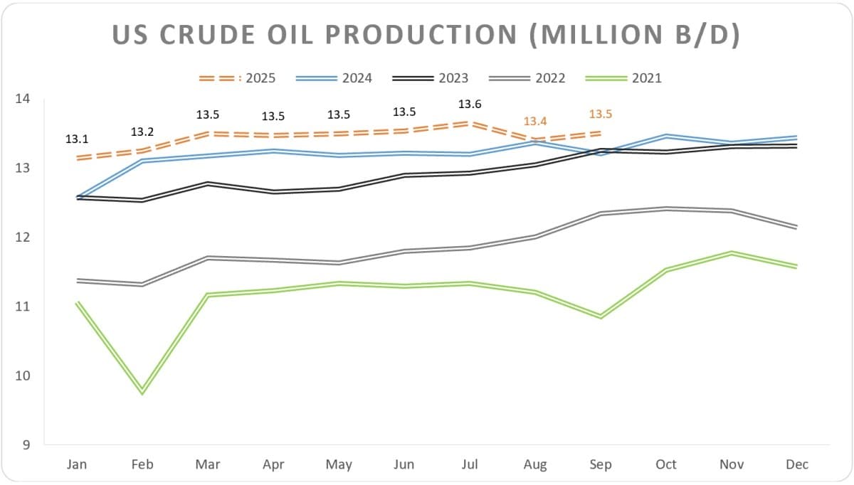 An 8% weekly loss is a rare occurrence in oil markets, especially if it comes on the back of five straight daily declines. Even though Friday’s trading has shown a marginal recovery with ICE Brent edging closer to $65 per barrel, however it seems that Sunday’s OPEC+ meeting could prompt further price declines in case members agree to expedited production unwinding. Amidst a US government shutdown and record year-to-date high OPEC+ crude exports in September, bearishness is gradually becoming the mainstream sentiment.