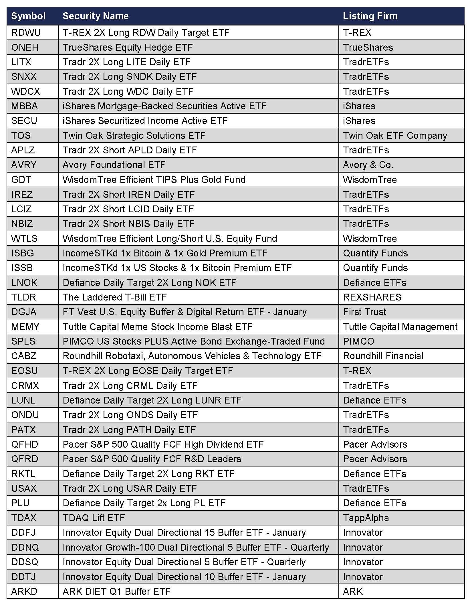 In January 2026, Cboe added 39 new listings to Cboe BZX® Equities Exchange (BZX).