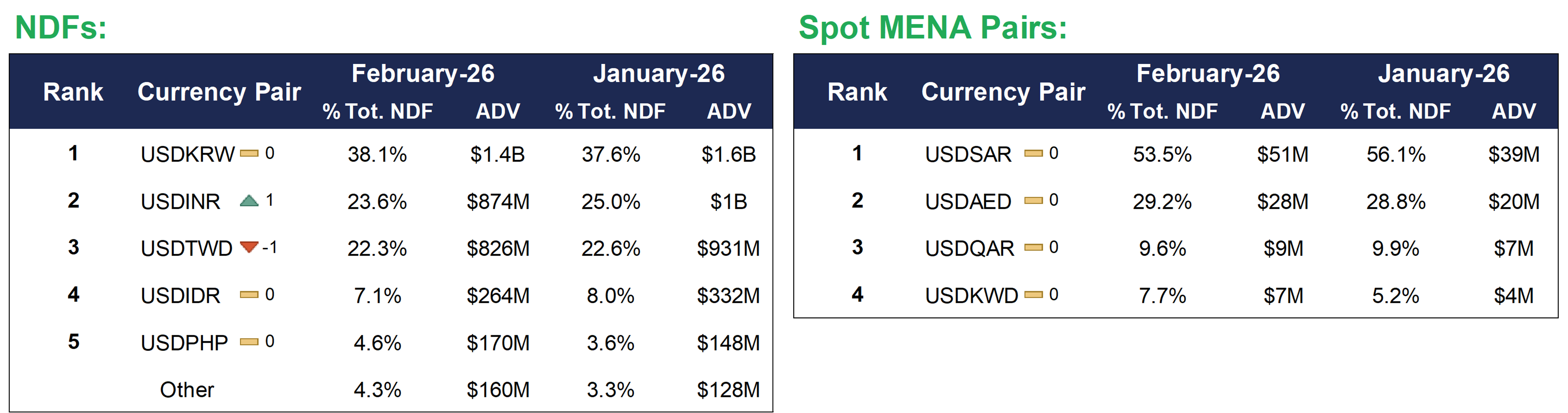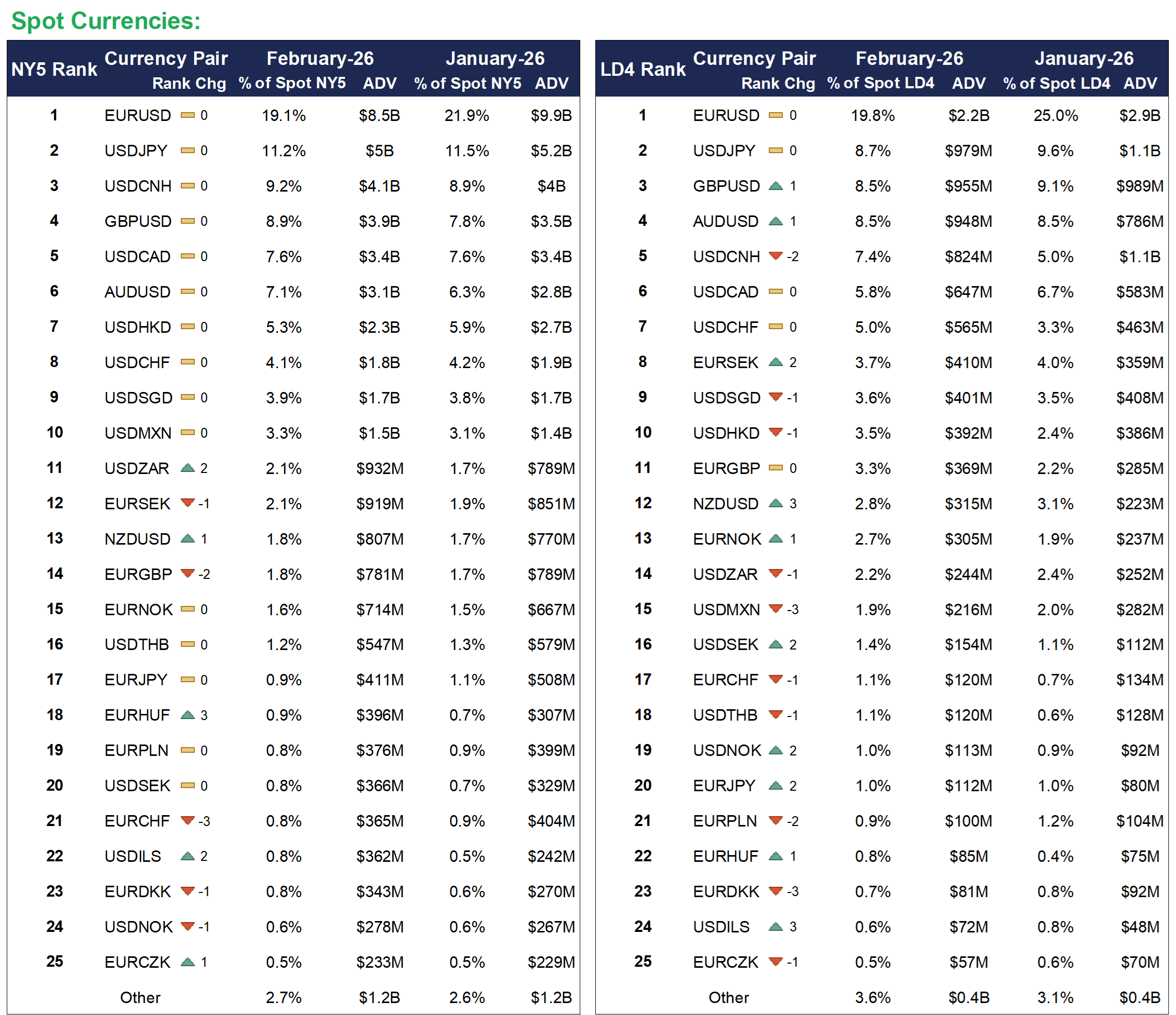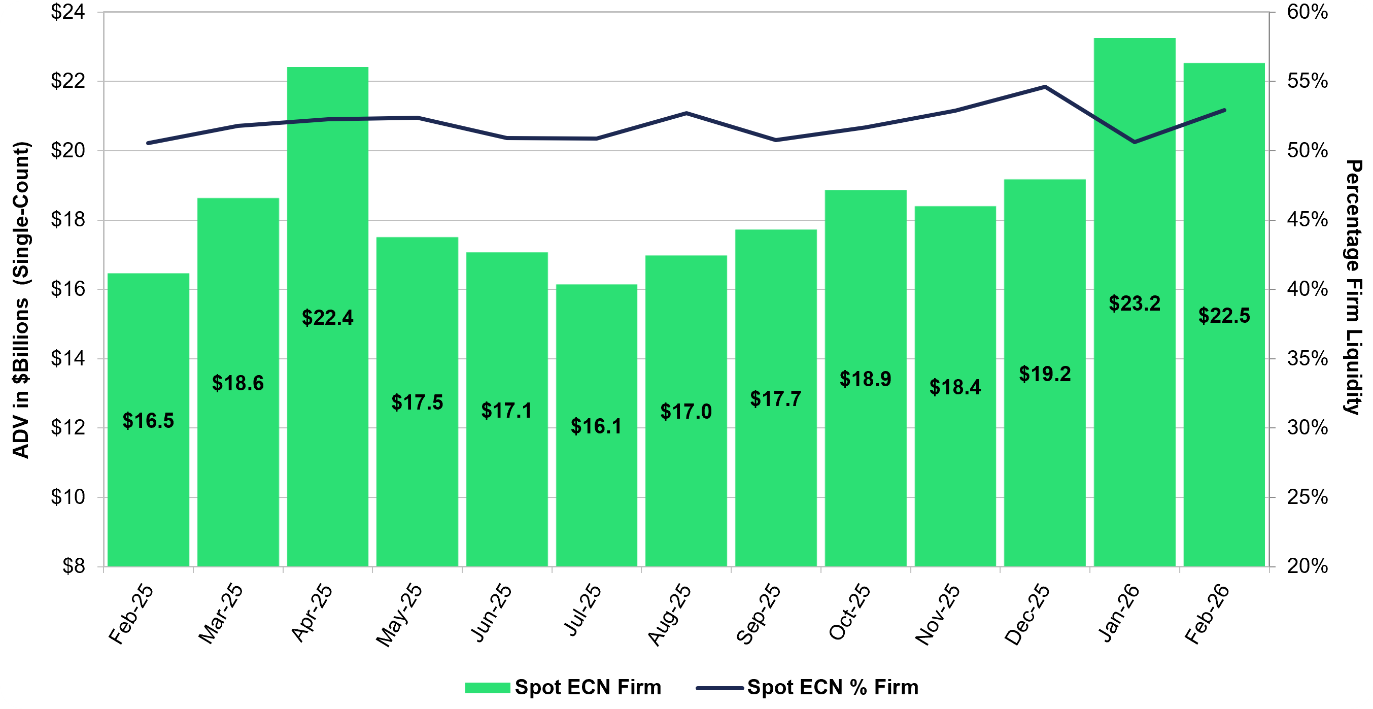 - At $22.5 billion, Cboe FX ECN Firm ADV2 accounted for 52.9% of the Spot ECN total, up 36.8% from $16.5 billion in February 2025.